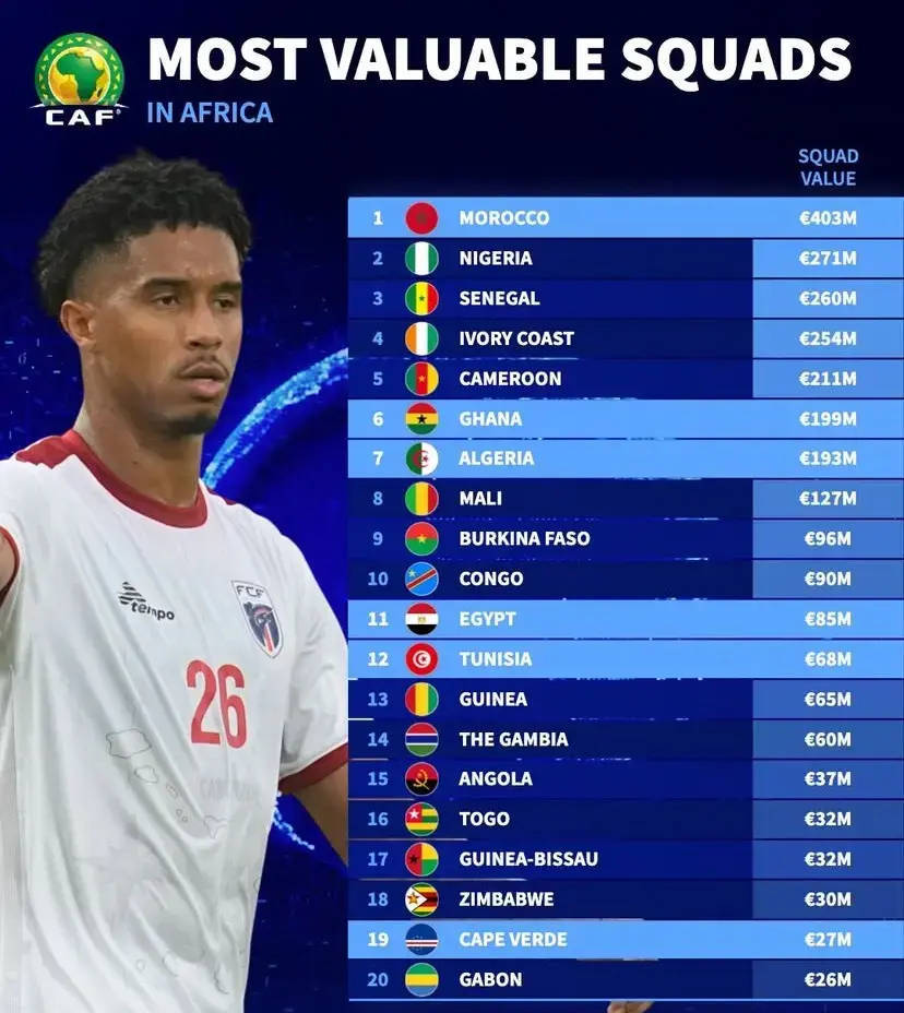 当然,即便如此,晋级世界杯决赛圈之前,佛得角国家队依然很难在世界足球的版图上被清晰地看见,从身价来看,佛得角国家队总身价仅为2700万欧元,在非洲也只排名第19位,其中身价最高的球员是俄超克拉斯诺达尔的中场凯文·皮纳和土超特拉布宗体育的后卫格纳·皮纳,身价约为500万欧元,全队身价在100万欧元以上的也只有8人。